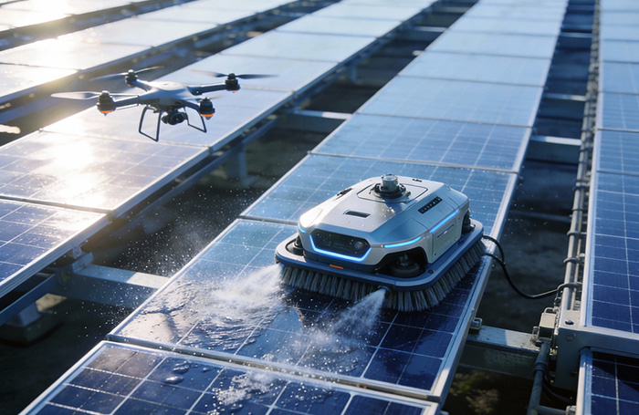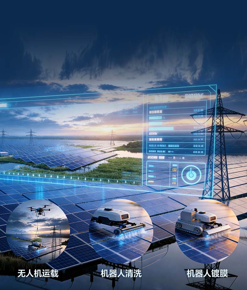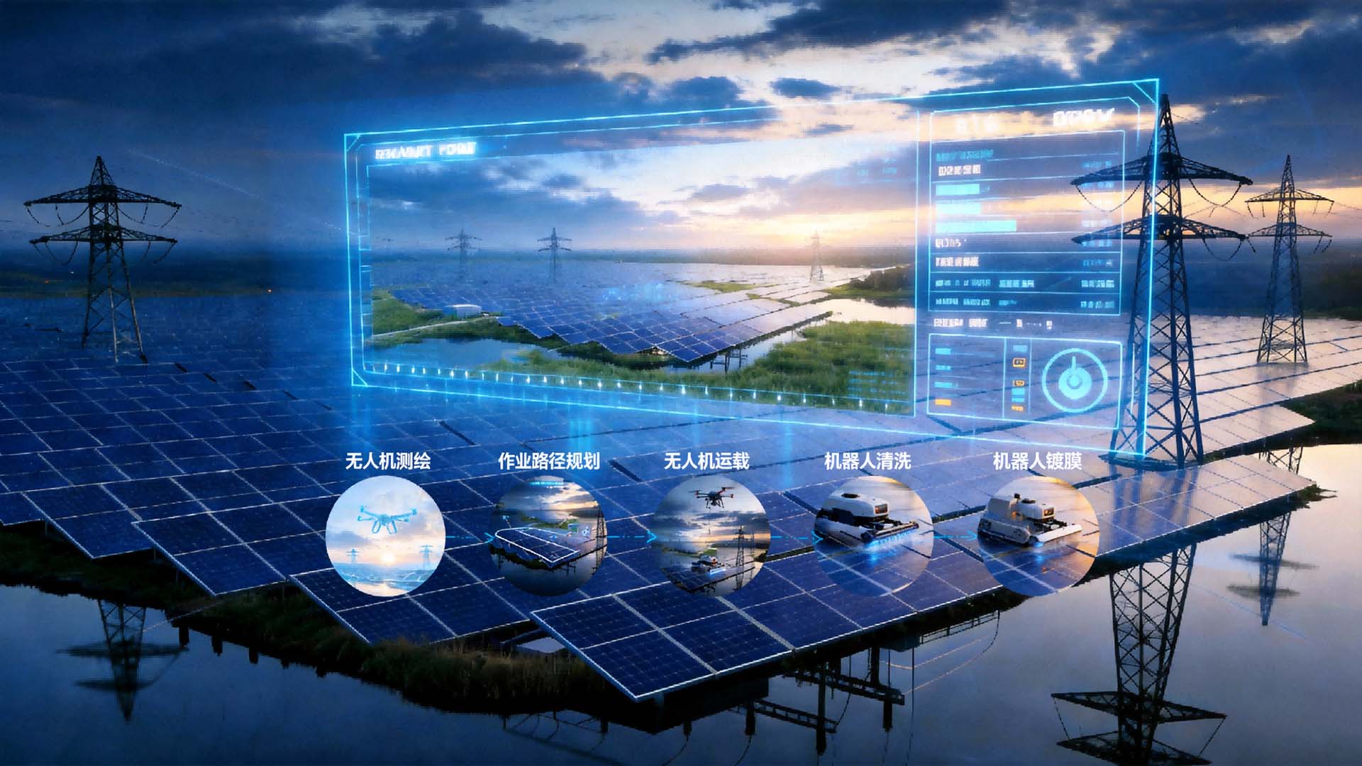 在集成无人机精准测绘、智能路径规划、自动搬运,以及机器人自主清洗与协同镀膜等多硬件智能模块的基础上,构建起一个多维一体的光伏一站式智能化服务系统,最终实现从巡检、搬运、清洗到镀膜的全流程自动化闭环作业。