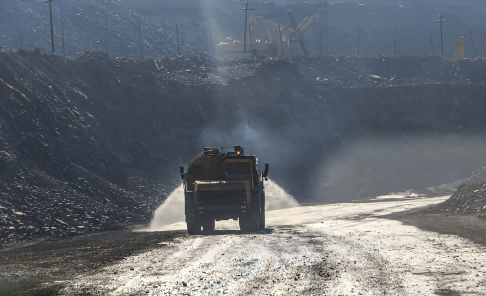 矿山裸露面、排土场、运输道路扬尘严重,污染大气,危害健康;传统洒水抑尘效