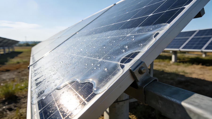亲水性纳米涂层在减反射的同时,通过维持表面长期洁净,保障玻璃透光率不受灰尘遮蔽,从而稳定提升组件发电效率。