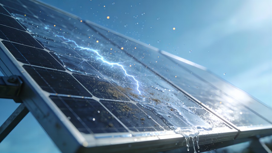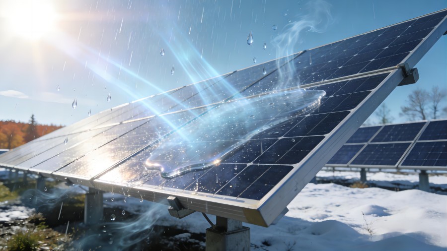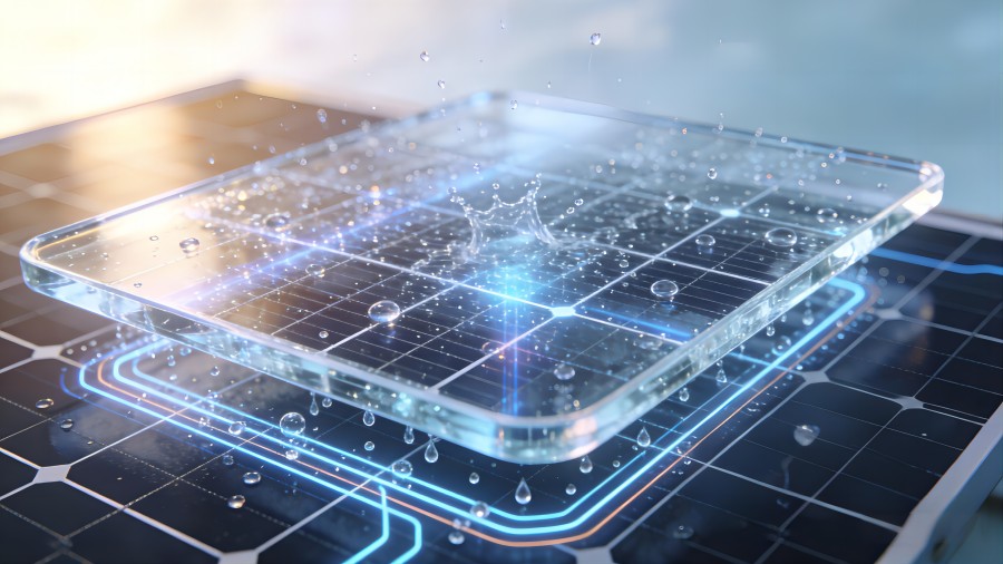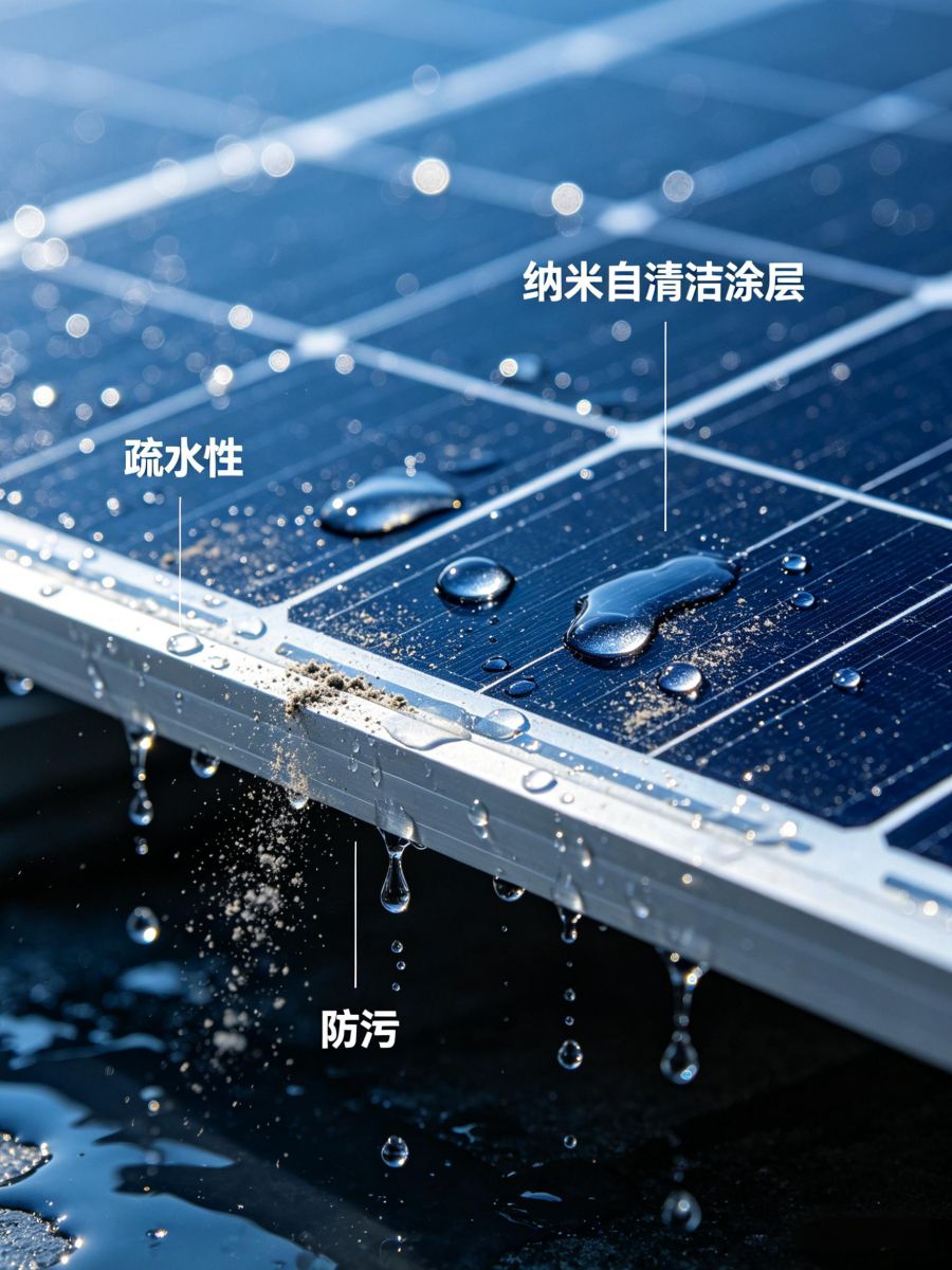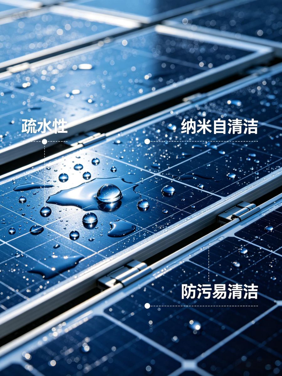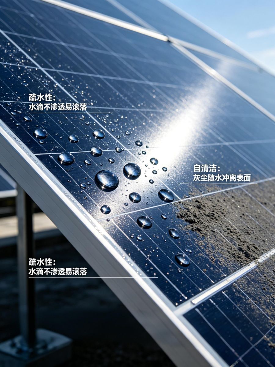 涂层通过调控表面电导率,中和光伏板静电荷积累,大幅削弱空气中带电微粒的静电吸附效应。结合超亲水特性,从污染形成的初始环节阻断尘埃附着,显著降低积尘速率,提升长期透光一致性。
