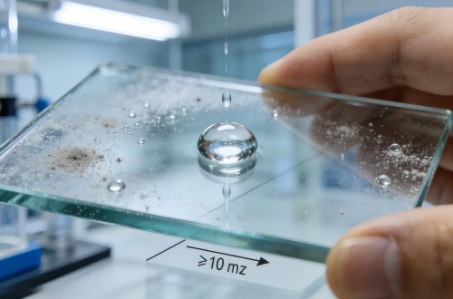 产品名称 光学玻璃疏水性纳米涂层 型号 YCB04003G 静态接触角 150°–172° 滚动角 ≤1°–5° 可见光透光率 85%–95.24% 雾度 ≤0.97% 涂层厚度 100–500 nm(纳米级薄膜)