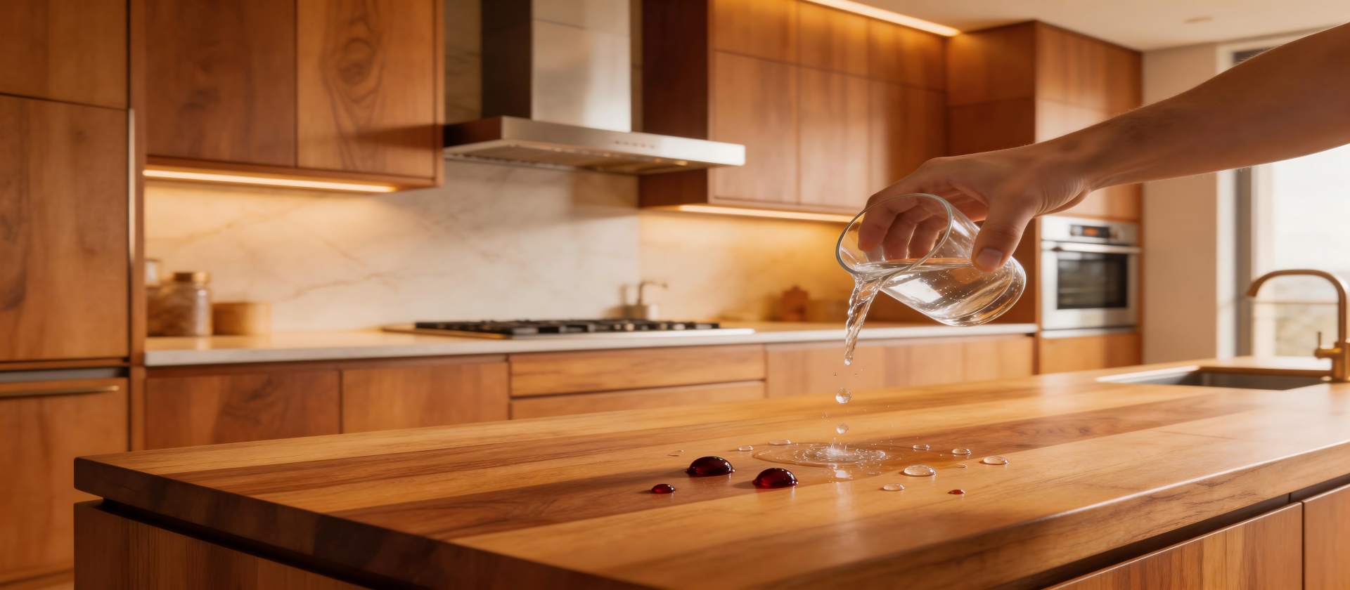 涂层固化后在木材表面形成致密的纳米级保护膜,大幅降低木材的表面张力。当水性污渍(如咖啡、果汁)或油污滴落时,会形成滚珠状水珠滑落,无法渗透进木材导管。即使是顽固的油性笔痕,也能轻松擦拭干净,避免家具因日常使用而留下难以去除的印记,长久保持洁净如新。