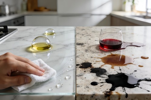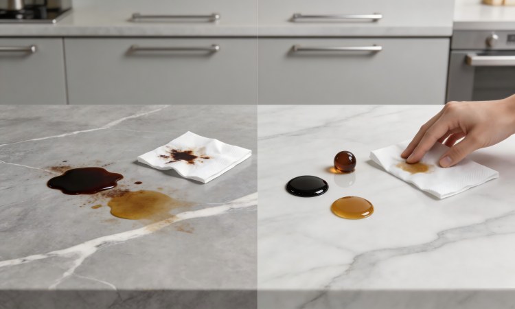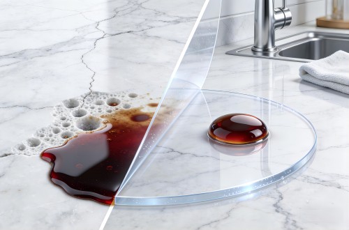 该涂层能有效封闭大理石及人造石表面的微小孔隙,形成一层致密的透明保护屏障。能有效阻挡茶渍、酱油、食用油等有色液体及污垢渗入基材内部,从根源上防止石材因吸收污渍而产生的永久性变色或污染,保持石材的天然纹理与质感。