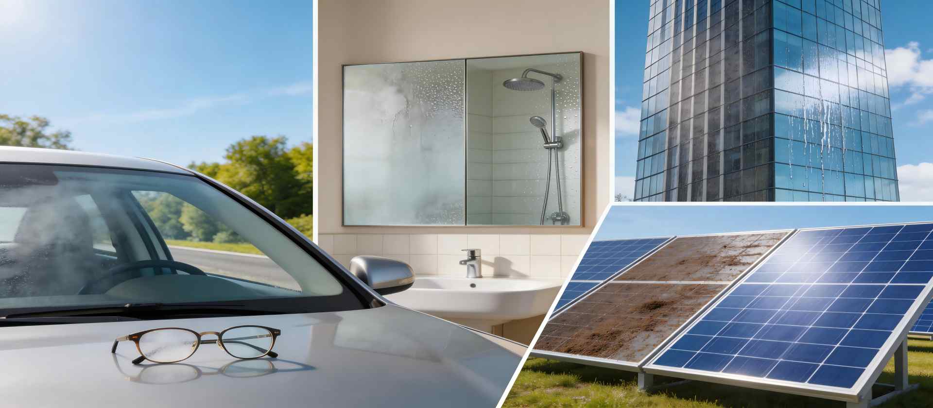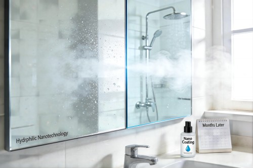 本涂层采用亲水化纳米改性技术,能在玻璃表面形成一层超薄且均匀的分子膜。这层薄膜能极大降低水珠与玻璃的接触角,使水汽无法凝结成阻碍光线的雾状小水滴,而是迅速铺展形成均匀水膜,确保光线无散射。无论是浴室镜的蒸汽还是眼镜片的温差起雾,都能在涂敷后享受长久清晰的视觉体验,一次施工,效果持续数月。