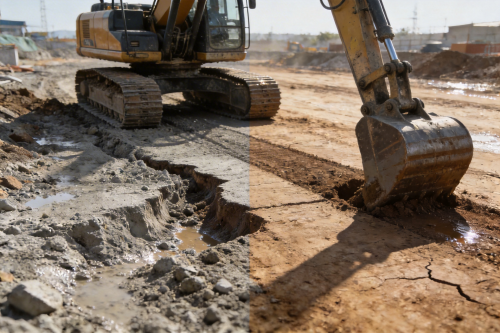 无需换填,兼容原位搅拌、粉喷桩、流态浇筑等多种工艺,适配普通挖掘机与专用搅拌桩机。
