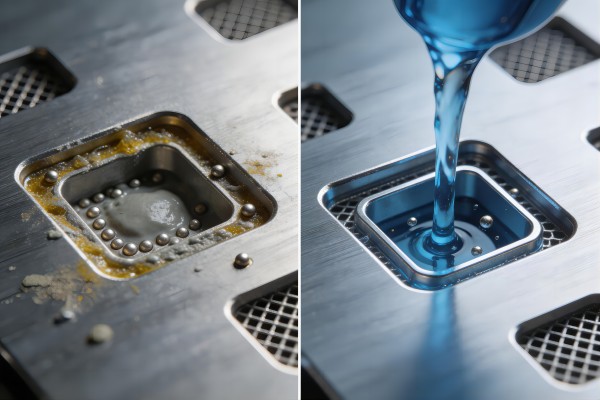 乳化剥离锡膏助焊剂,超声喷淋协同清洗,孔内残留零残留,提升印刷良率超95%。