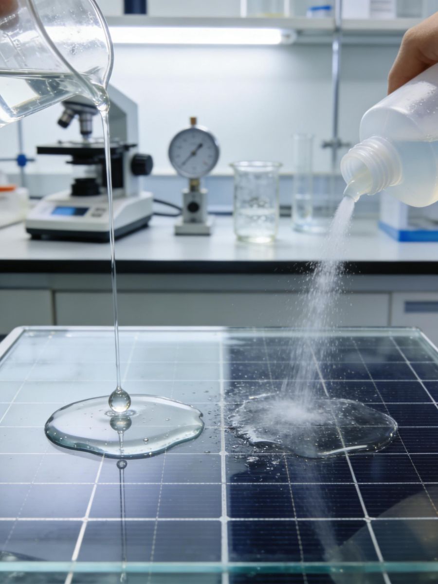 涂层固化后具备极高的硬度和致密性,能够抵抗风沙冲击及日常清洁作业中的轻微划伤。它不仅起到缓冲和保护玻璃基体的作用,还能防止因划痕导致的微裂纹扩展,确保透光率和结构强度长期稳定,为光伏组件提供持久可靠的物理防护。